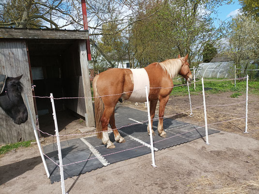 anzufüttern, alle paar Stunden Heucobs-Brei, mehrfach am Tag spazierengehen. Dann wurde ich aufgrund meiner totalen Erschöpfung unaufmerksam und wurde auch noch von einem Pony ins Becken